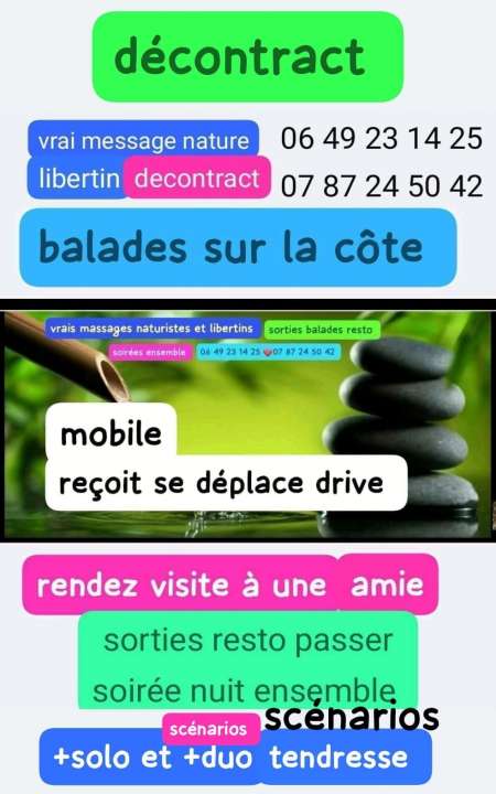 vrais massages naturistes très doux tendres et libertins et sorties .